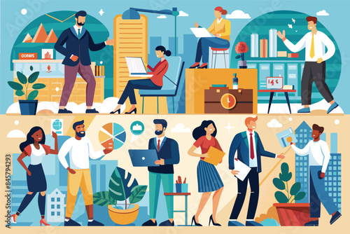 Good neighbors communicating with each other from open windows and balconies, flat vector illustration. Happy people talking, drinking tea, coffee, sharing pie, book with neighbors. Good neighborhood.