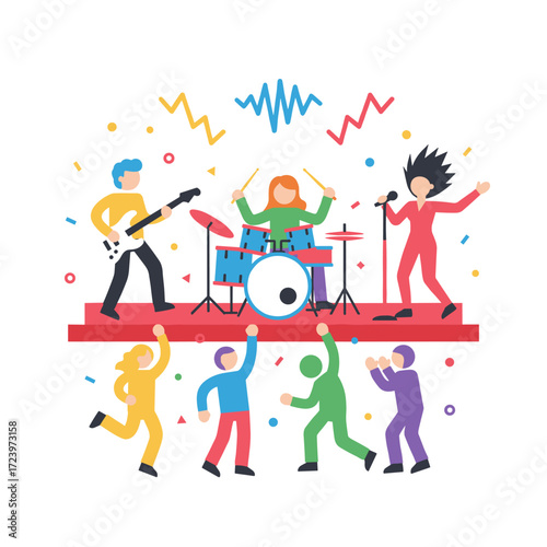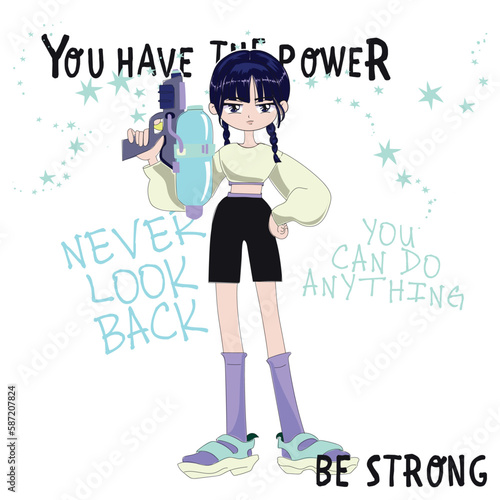 Street art concept vector illustration. Tiny graffiti characters with huge spray painting tools and accessories such as paint spray can, jars, markers, mask and retro babin recorder.