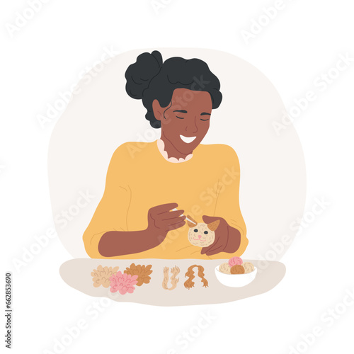 Happy grandfather cooking with granddaughter in kitchen, flat vector illustration. Grandpa and grandkid spending time together making burger. Grandparent and grandchild relationships.