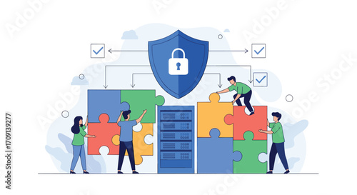 Business people making deal using tablet and desktop computer, vector flat illustration. Digital business agreement, great deal, online communication, thumb up hand sign for approval.