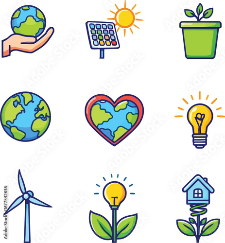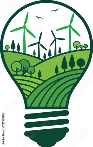 Green energy concept, vector illustration in paper art style. Solar panels and windmills inside of lightbulb. Ecology, renewable alternative energy sources.