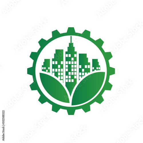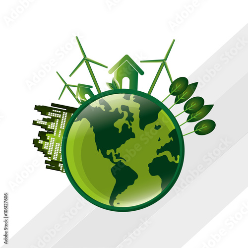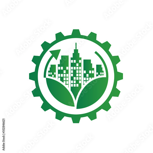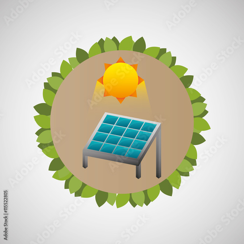 Green energy logo. Paper cut windmills and solar panels in circle with green and white leaves. Vector illustration in paper art style. Save environment, alternative energy, ecology concept.