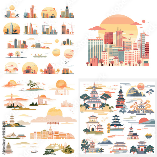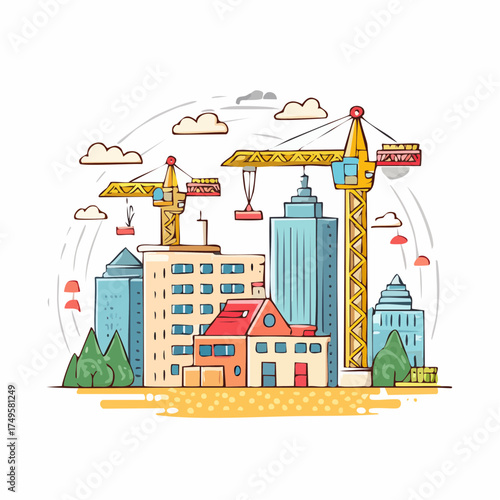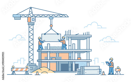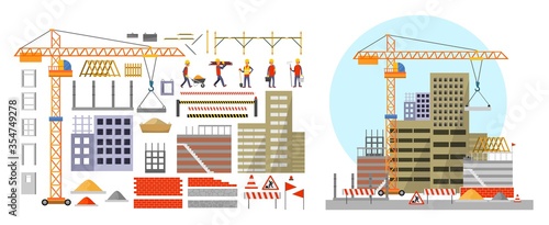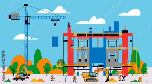 Renewable energy smart power system installation vector. Solar panels, wind turbines for high voltage electricity transmission construction site illustration