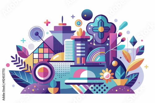 Micro characters watering plant, hugging huge eco planet Earth connected to solar panels and windmills generating renewable alternative energy, vector flat style design illustration. Green energy.