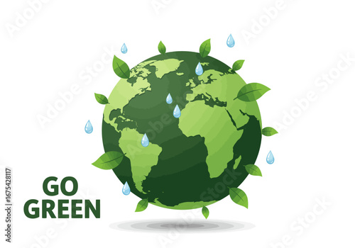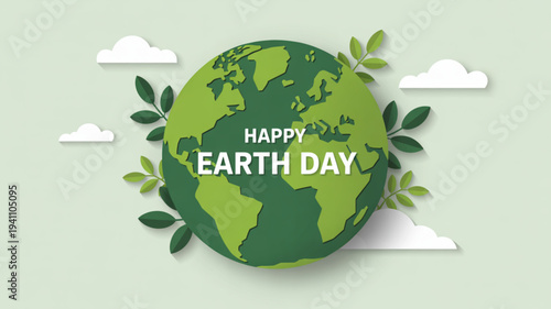 Green recycling sign and planet Earth globe, vector illustration in paper art craft style. Waste reuse and recycle symbol, label. World Environment Day. Save planet.