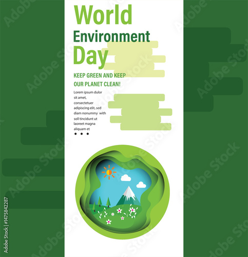 Green tea advertising vector icon brand design. Paper cut illustration with package box and sachet, woman silhouette gathering herbals crop