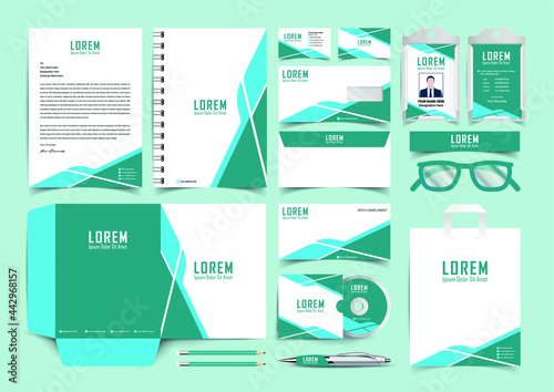 Green tea paper box and tea bag packaging mockup set. Vector realistic illustration.