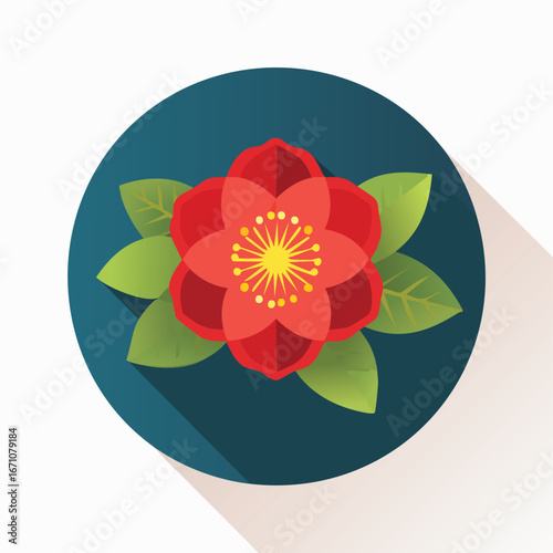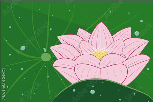 green water lily leaf and pink blooming flower vector icon isolated on white background.