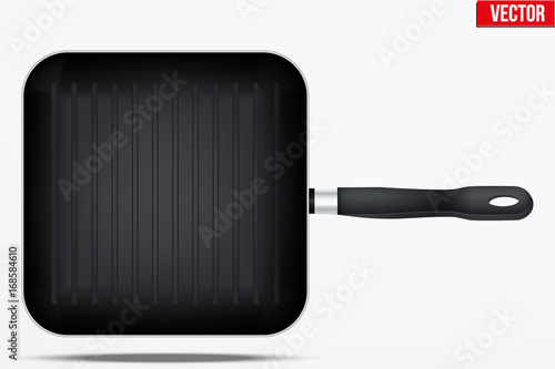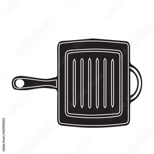 Grill pan top view icon vector. Square saucepan for barbecue meat, sausage cooking isolated on white background
