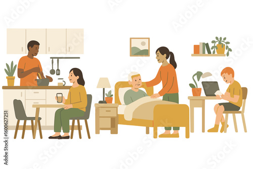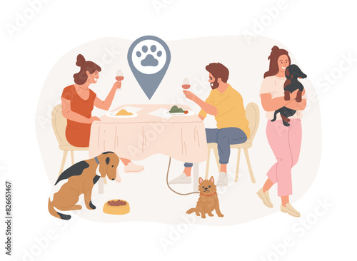Grooming pet master caring dogs cutting fur with scissors vector illustration scene set. Professional salon service for domestic animals
