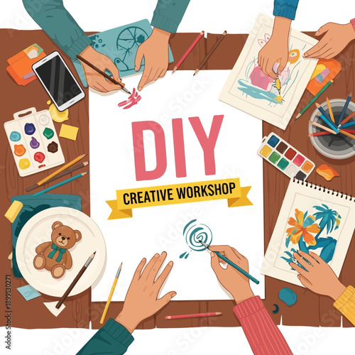 Group of business people working at the office desk. Business concept top view vector posters. Calendar schedule planning, office meeting, team work, kanban board.