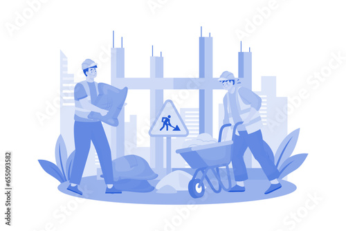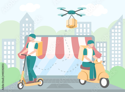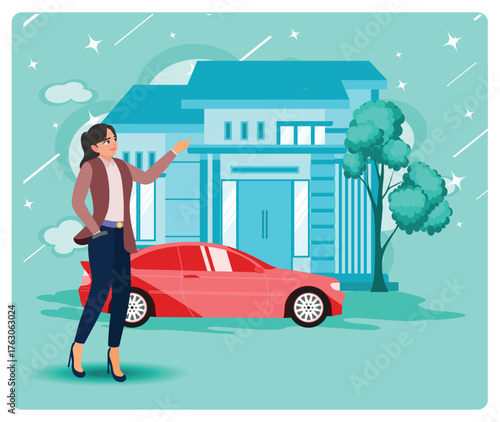 Group of businessman travel by car with stock market exchange building on background. Business concept vector illustration in cartoon style.
