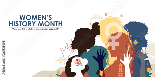 Group of women of different nationalities, feminists hugging together, flat vector illustration. Feminism, diversity, women empowerment, race equality, friendship, international solidarity.