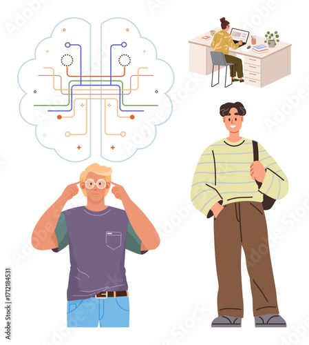 Group of people saying excellent word in different languages showing ok, thumbs up hand gestures, flat vector illustration. International communication. Foreign languages school, courses.