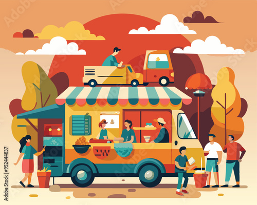 Group of people volunteers helping homeless animals, flat vector illustration. Male and female characters feeding, walking pet dogs from shelter. Volunteering concept.