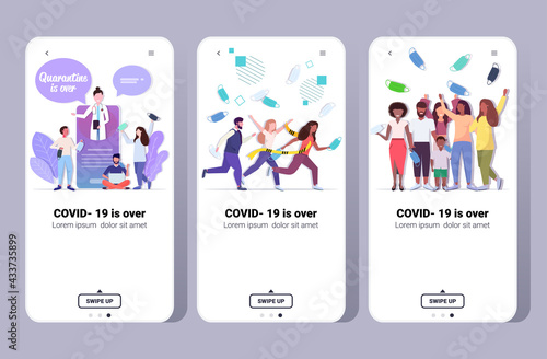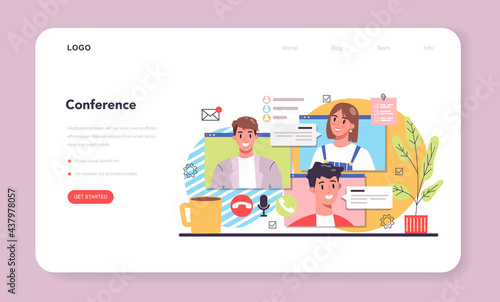 Group video call chat with friends. Video conference technology. Mobile app screens. Vector banner template for website and mobile development. Web site and UI design illustration.