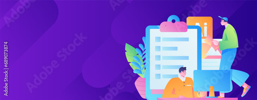Growth agenda, to do list. Tiny people professional team identifying priority tasks to reach business goals, vector flat illustration. Work planning, aligned priorities, successful business strategy.