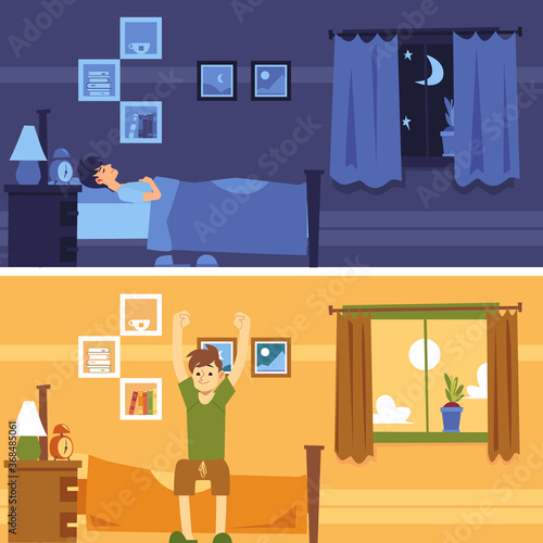 Gym locker room concept vector illustration. Man with sports bag in locker room changing his clothes. Fitness club interior.
