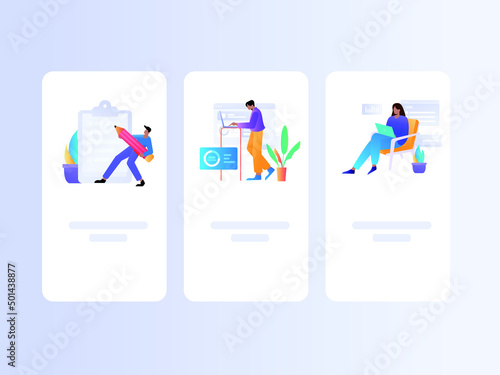 Fitness, Powerlifting and Yoga mobile app onboarding screens. Menu banner vector template for website and application development. Fitness gym services, sport activity, healthy lifestyle.