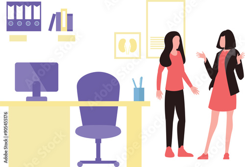 Vector illustration of doctor gynecologist female consulting her pregnant patient. Gynecology consultation flat style design element.
