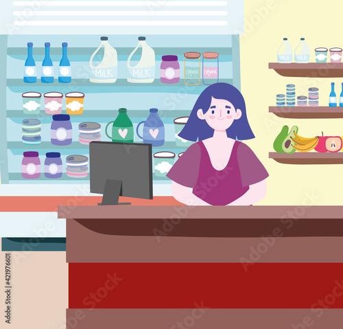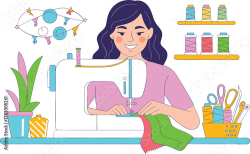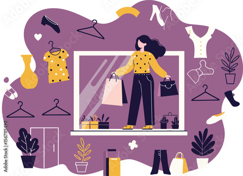 Gypsy fortune teller with magic crystal ball, candles on table, flat vector illustration. Astrology, mystical fortuneteller accessories. Tarot cards, spell book, potion. Occultism, palmistry, esoteric