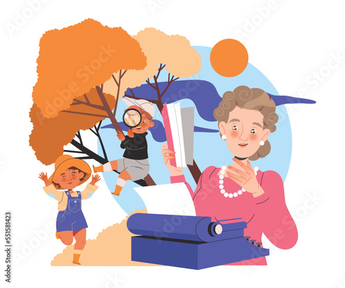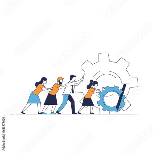 Huge woman head and micro characters hairdressers washing her hair with shampoo, vector illustration. Hairdressing salon services concept for web banner, website page etc.