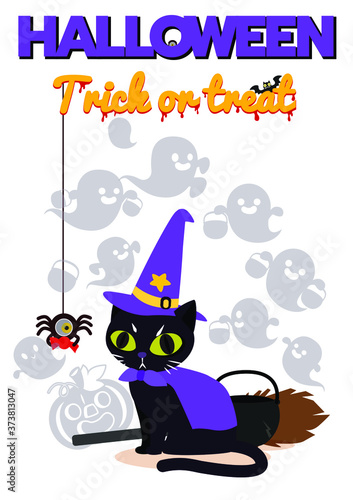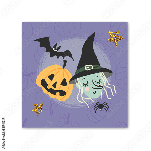 Halloween landing page template. Vector flat style design concept for Halloween website and mobile site development. Pumpkin, sugar skull mask, eyes, bats, candles, candy corns and witch hat.