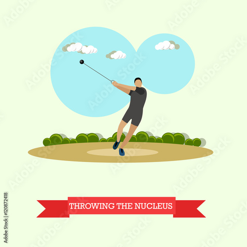 Vector illustration of hammer throw sportsman. Track and field athletics competitions. Male athlete preparing to throw a hammer. Flat design
