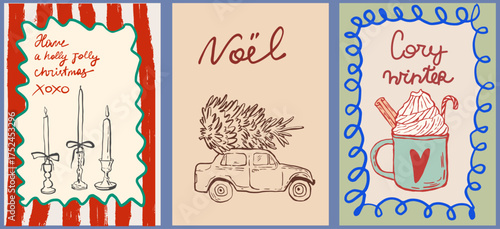 Hand drawn mulled wine vector banners set. Black and white sketch posters with wine glass. Menu cards design templates in retro vintage style
