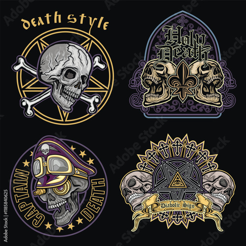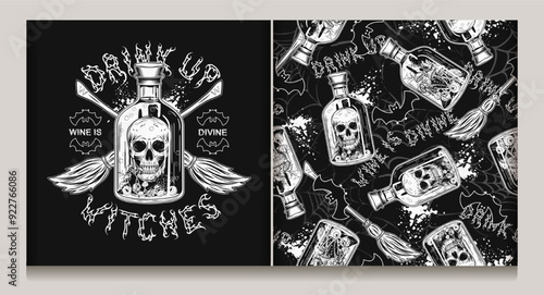 Hand drawn mulled wine vector gift tags set. Black and white sketch badges and logo with wine glass. Menu cards design templates in retro vintage style