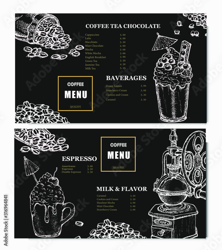 Hand drawn mulled wine vector poster. Black and white sketch with wine glass. Menu cards design templates in retro vintage style on black background.