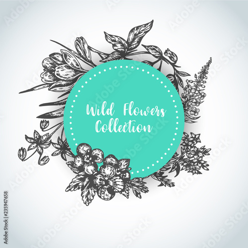 Hand drawn mulled wine vector round banner. Black and white sketch poster. Menu logo and emblem design templates in retro vintage style.