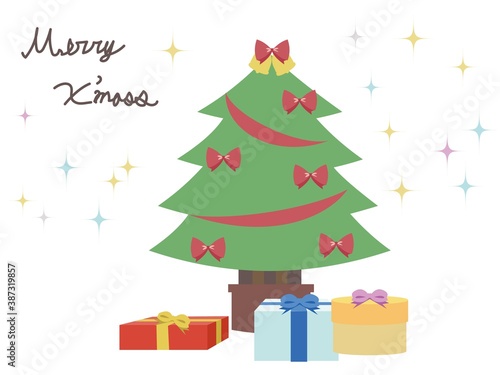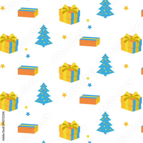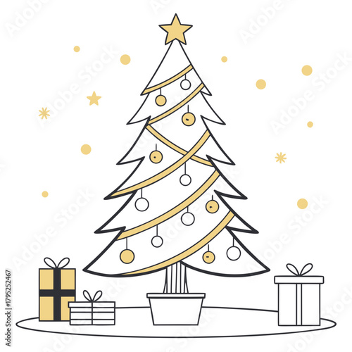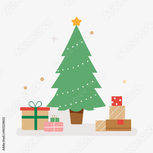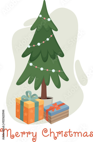 Handcraft origami Christmas tree decoration with present gift box vector illustration. Greeting card design template for Merry Xmas and Happy New Year invitation and congratulation