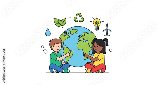 Hands holding planet Earth. Climate corporate responsibility and sustainable development cocenpt vector illustration. Green renewable energy industry. Commitment to decrease co2 emmision.