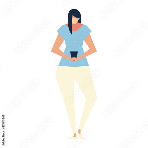 Handsome man character chatting by mobile phone vector icon. Guy student holding telephone isolated on white background
