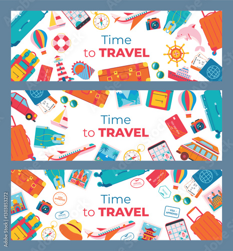 Happy birthday greeting card festive design isolated set. Templates for congratulation and invitation with celebration accessories, party supplies and surprise gifts decoration vector illustration