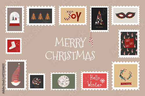 Happy birthday greeting card square templates with lovely festive design decorated cake and sweets, balloons, wrapped surprise gift boxes set. Typography congratulation postcard vector illustration