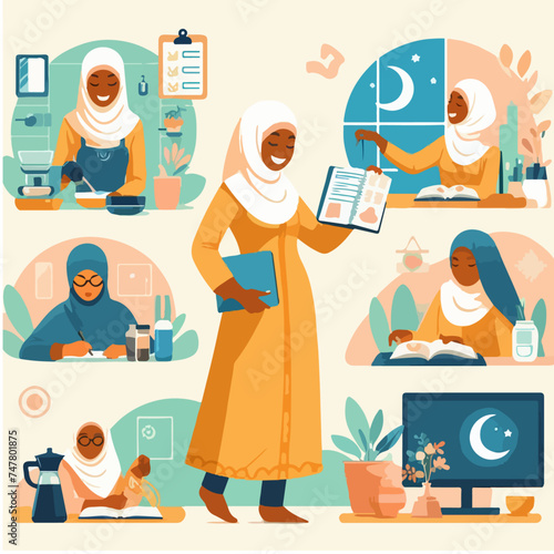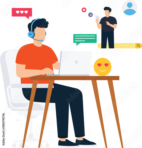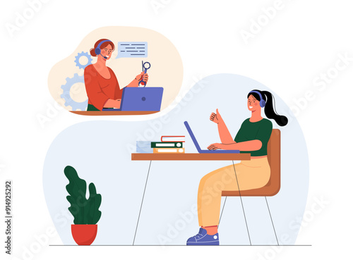 Happy children, boy and girl making smart robot, flat vector illustration. Robotics school, kid engineering club, robotic class.