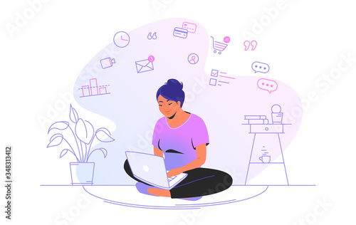 Happy children playing with robot toy or programming smart robot, flat vector illustration. Robotics school, kid engineering club, robotic class.