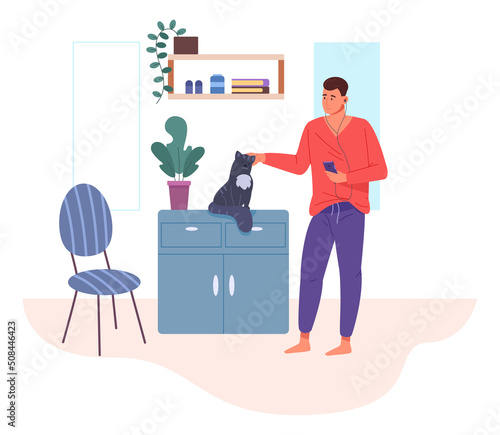 Happy couple choosing ceramic tiles in construction shop, flat vector illustration. Home improvement, home renovation or remodeling.
