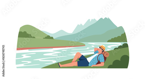 Happy loving young couple enjoying rest drinking cocktail travelling by cruise liner ship vector illustration. Holiday vacation and tourist trip concept