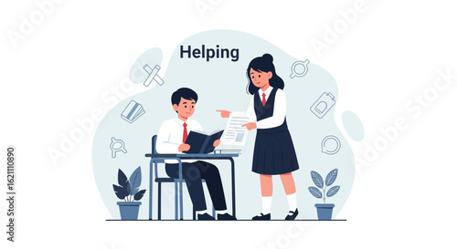 Happy couple greeting each other with open arms, flat vector illustration. Happy wife meeting her husband coming back home from business trip. Homecoming.