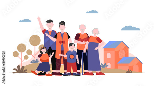 Happy couple in house building with lock, shield and alarm siren, flat vector illustration. Home security burglar alarm system. House protection, safety control.