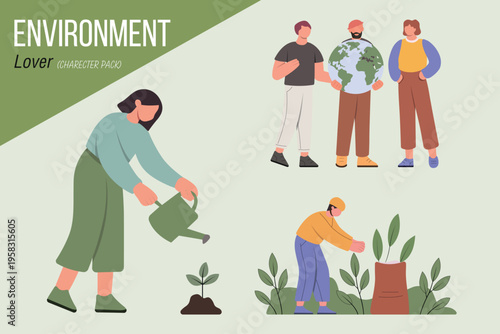 Happy couple walking in forest picking mushrooms, flat vector illustration. Mushroom hunting hobby. Summer and autumn season outdoor activity.