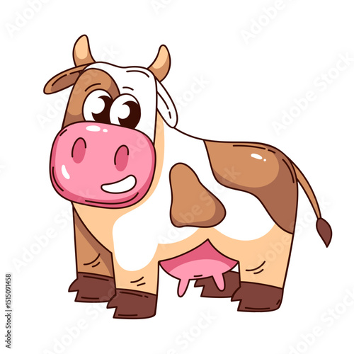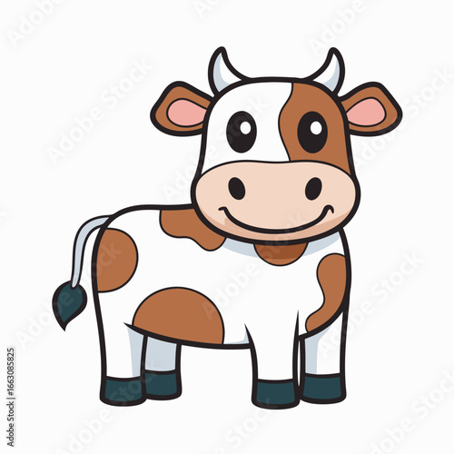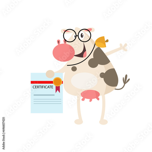 Happy spotted cow cartoon character holding milk pack vector. Cute funny farm animal loving fresh dairy drink isolated on white background