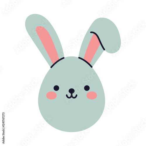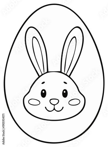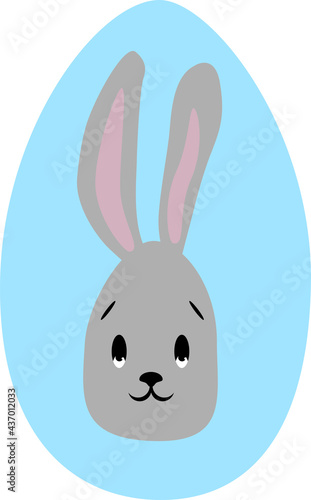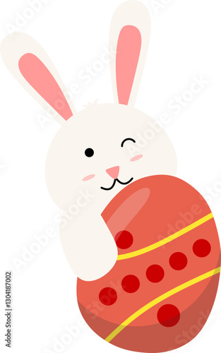 Easter bunny vector. Cute rabbit cartoon icon. Happy fluffy hare peeping out from behind painted egg illustration isolated on white background. Animal character for spring holiday greeting card design