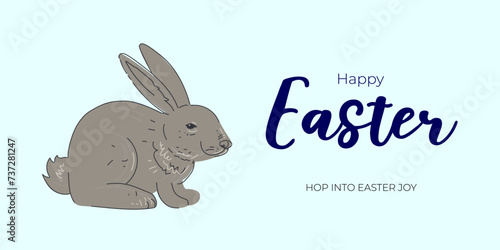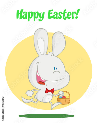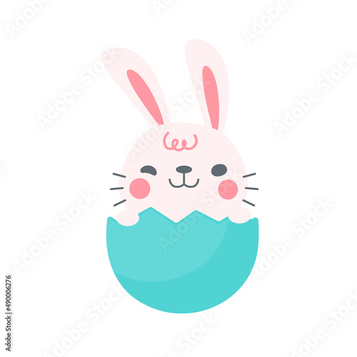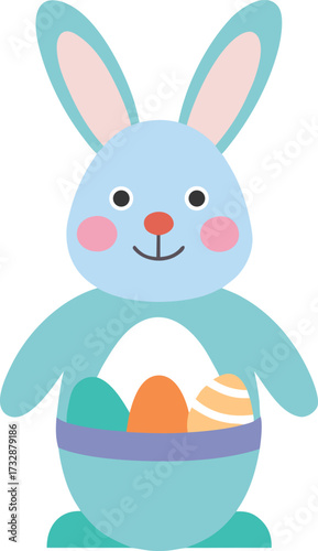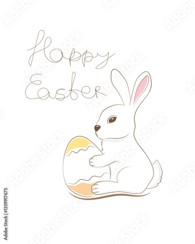 Easter bunny vector. Cute rabbit cartoon icon. Happy fluffy hare holding huge egg illustration isolated on white background. Animal character for spring holiday greeting card design