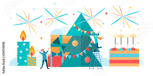 Happy Easter holiday. Family paint colorful easter egg and prepare for celebration. Vector illustration on white background.