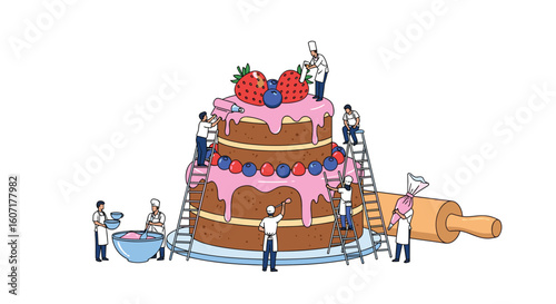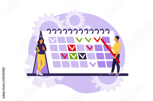 Happy Easter holiday. Family paint colorful easter egg and prepare for celebration. Vector illustration on white background.