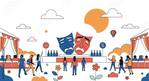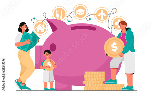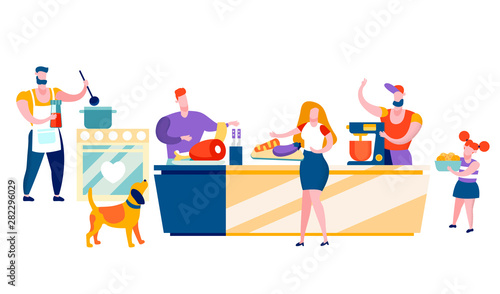 Micro characters carrying big Easter basket, painted egg, lighting candle on huge Easter cake with icing, vector flat illustration. Spring holiday celebration concept for web banner, website page etc.